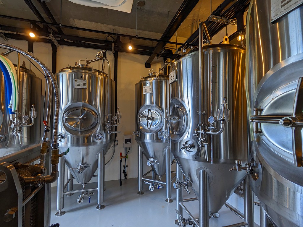 醸造についての説明を受けながらの工場見学の後、できたてのクラフトビールとおいしいつまみをいただきました。