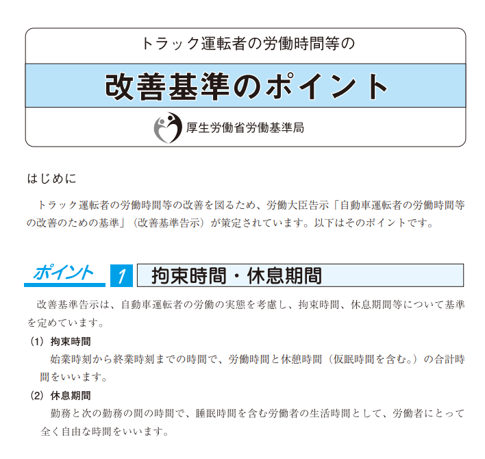 トラック運転者の労働時間等の改善基準のポイント