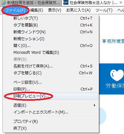 1.左上の『ファイル(F)』を左クリックした後、『印刷プレビュー(V)』を左クリック。