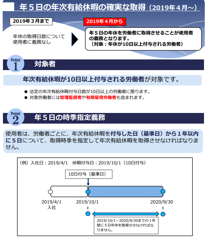 2019年に法改正となり、年次有給休暇取得義務5日が決定しました。