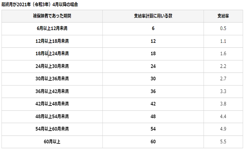 被保険者であった期間の平均標準報酬額×支給率(保険料率×2分の1×支給率計算に用いる数)