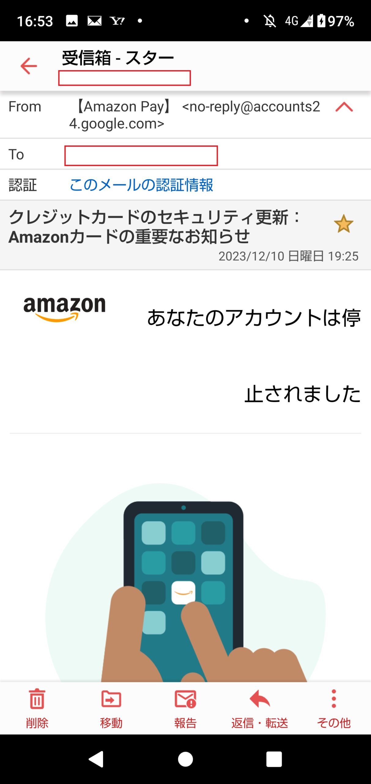 本メールでは、Amazonとは無関係なメールアドレスである事が分かりますが、