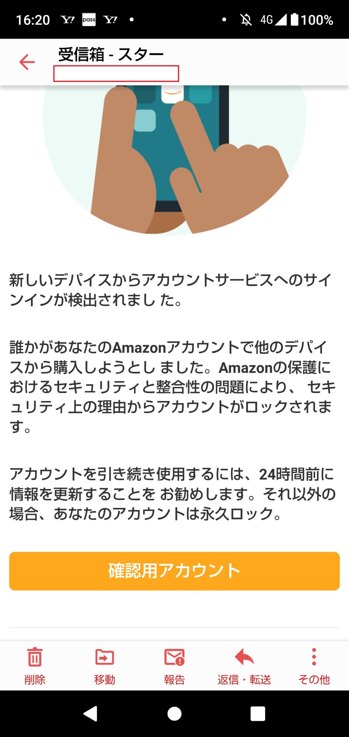 当然ながら、「確認用アカウント」をクリック、タップすると個人情報を搾取されるような