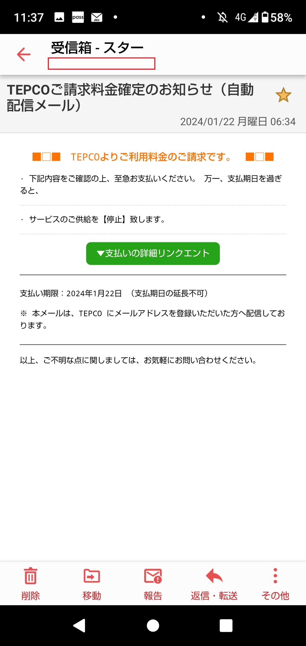 メール本文内の「TEPCO」に覚えが無く、検索したところ東京電力グループ関連でした。