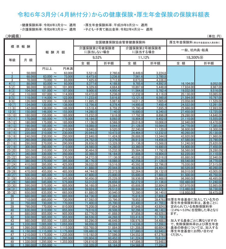 令和6年3月から健康保険料変更になります。