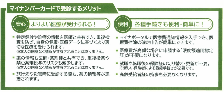 マイナンバーカードで医療機関を受診するメリットが紹介されていました。