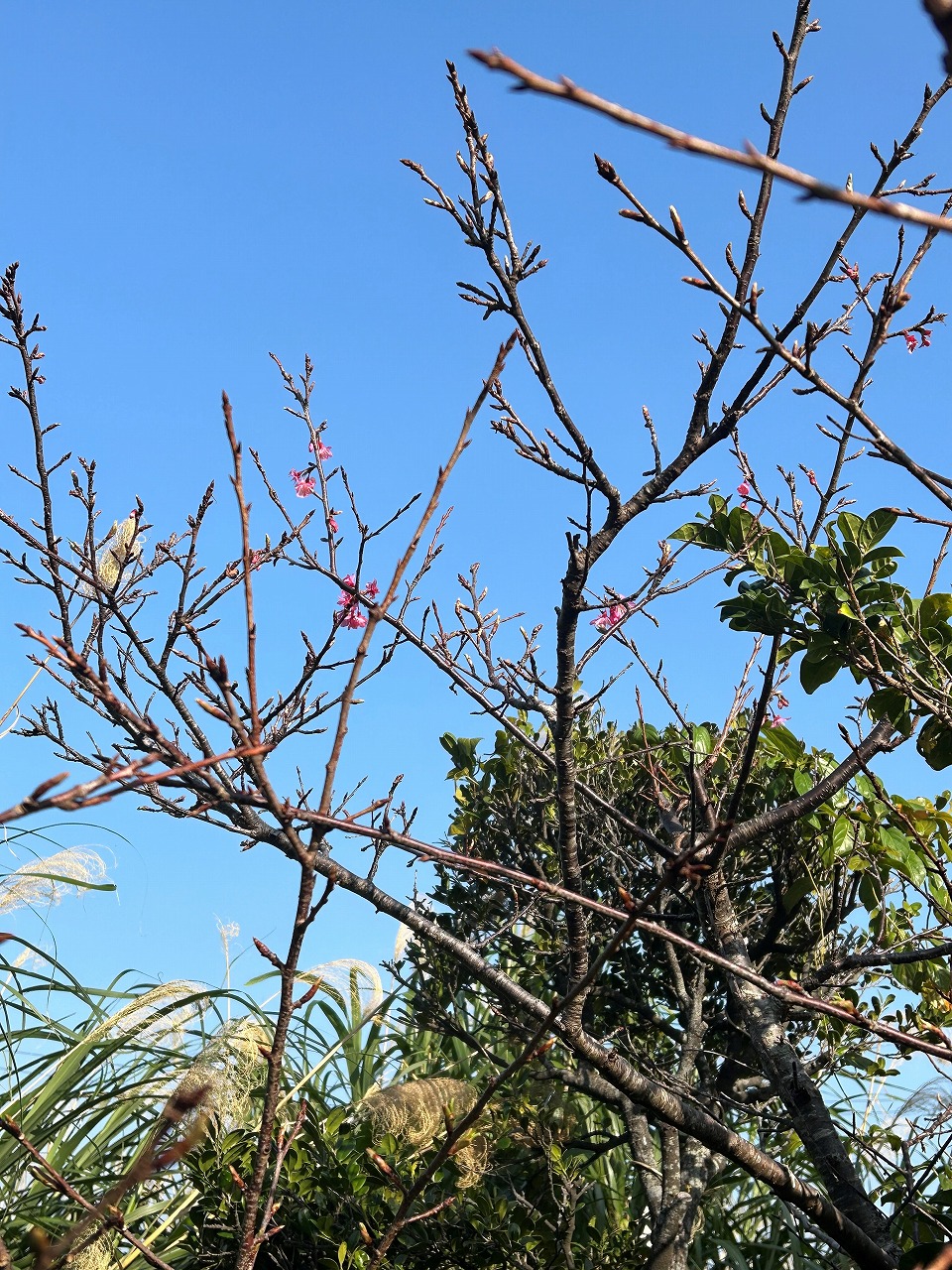 今年の桜は開花が遅いです。2月初旬です。