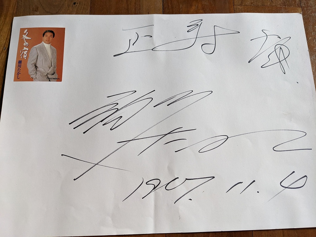 実家の荷物の中から歌手の細川たかしさんのサインがでてきました。