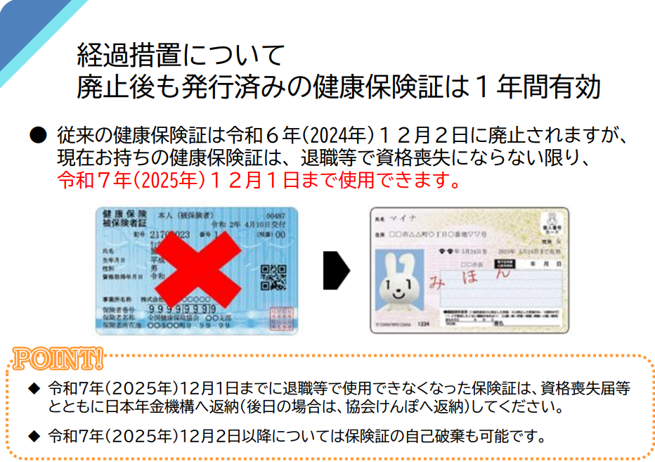 今お持ちの保険証も1年間は使用できます。