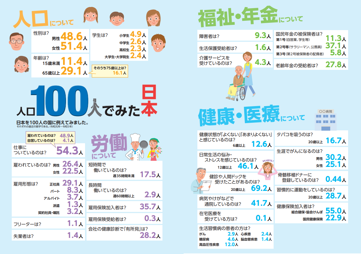 人口100人でみた日本!