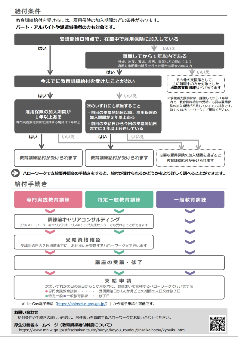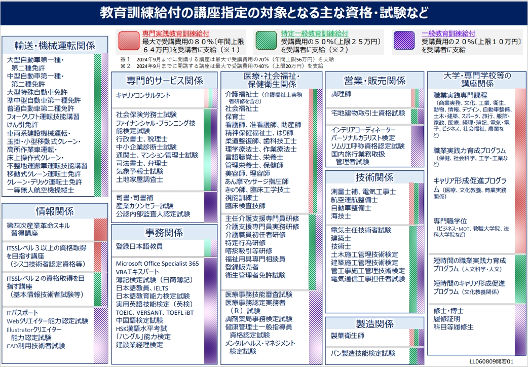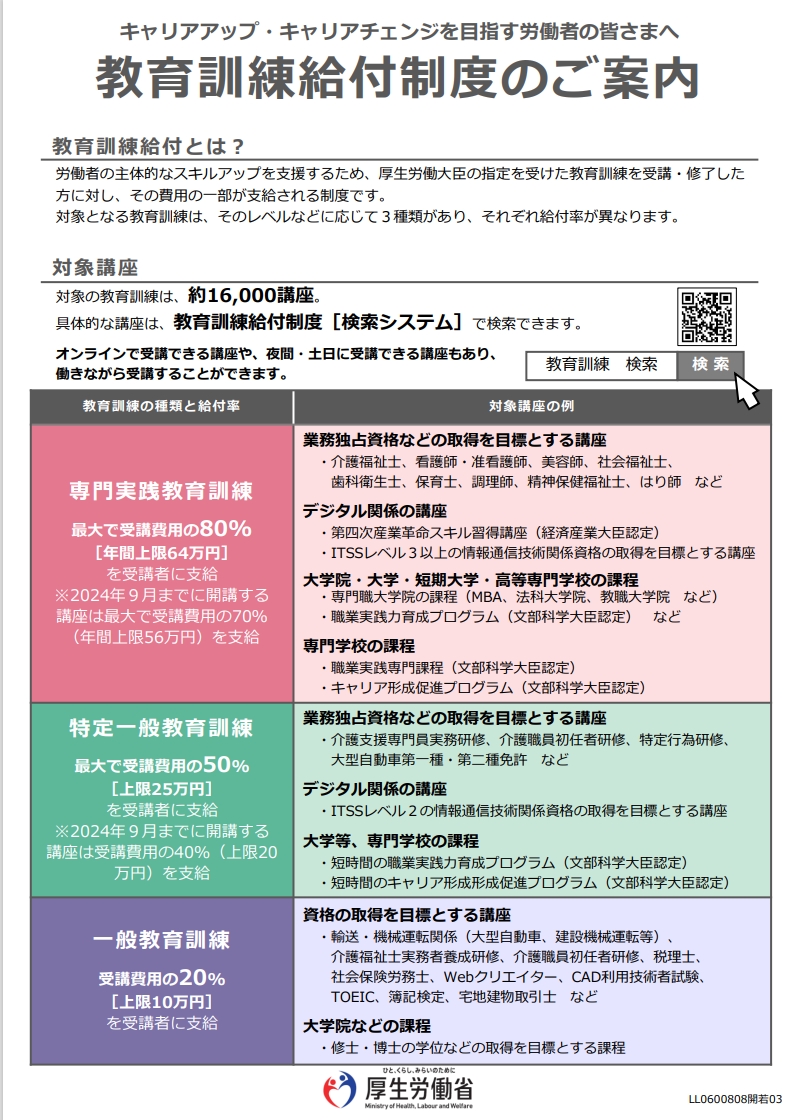 詳しくはこちらをクリック ⇒ 教育訓練給付金(厚生労働省HP)