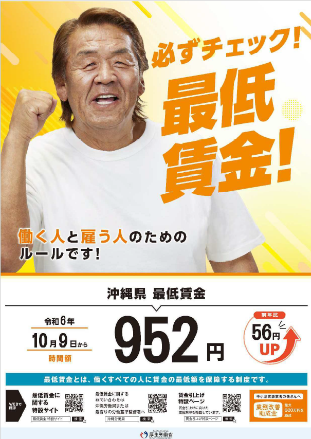 いよいよ、令和6年10月9日より沖縄県最低賃金が改正されます。