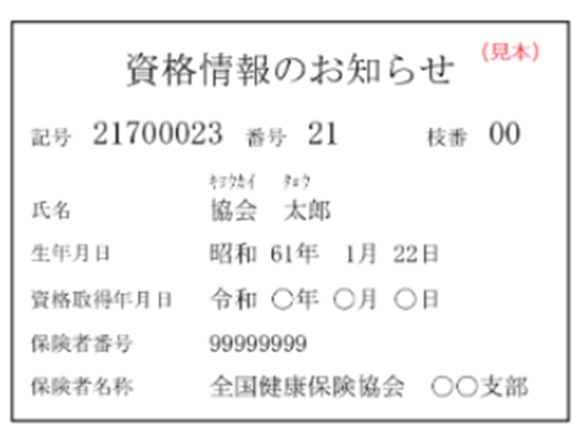 健康保険の各種給付金等の申請や検診の受診の際に必要となる記号・番号をお知らせするための物です。