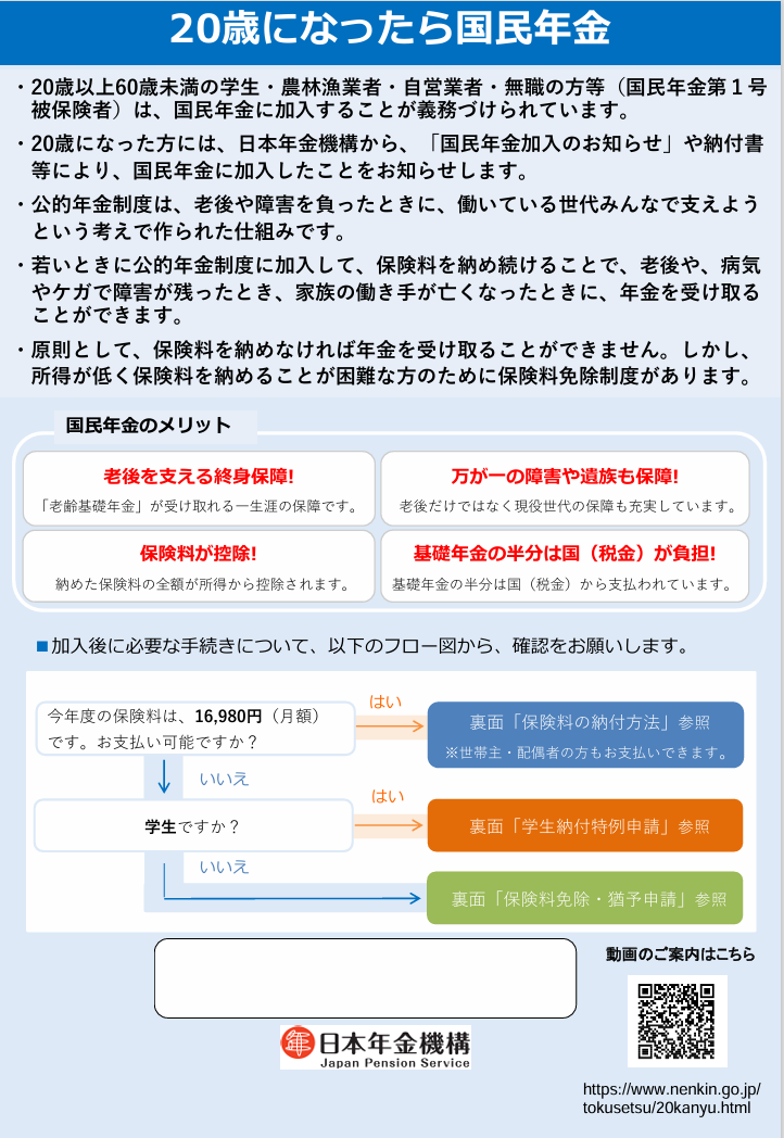 国民年金加入手続きなど詳しくはこちらから ⇒ 20歳になったら国民年金