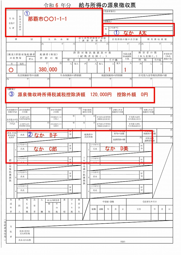 扶養者として書いた名前が載っているか、その人数分定額減税がされているか、