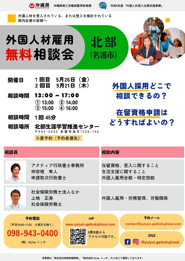 当事務所の社会保険労務士が、外国人材雇用の労務管理についての無料相談会で相談員として対応します。